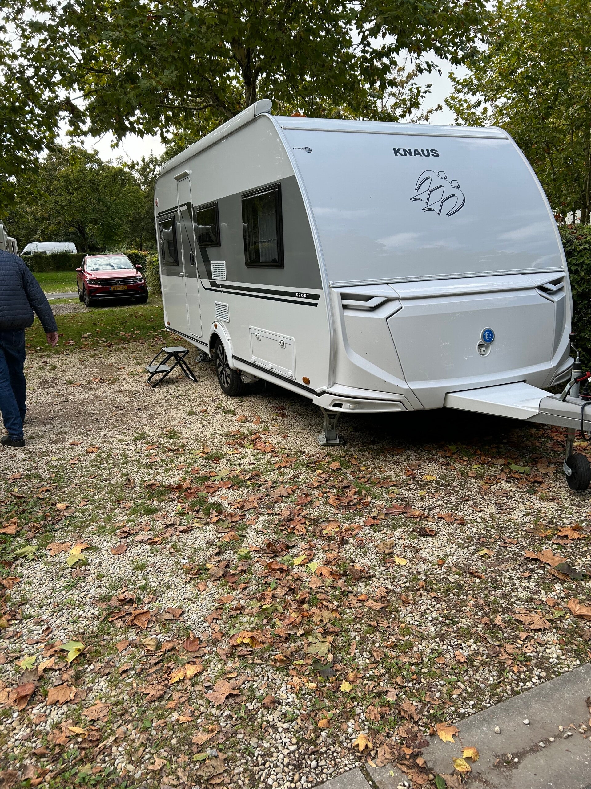 Caravan op zijn plaats gemoverd, mochten zelf een plekje uitkiezen. En Bas de luifel uitgedaan en onze nieuwe flappen er aangezet