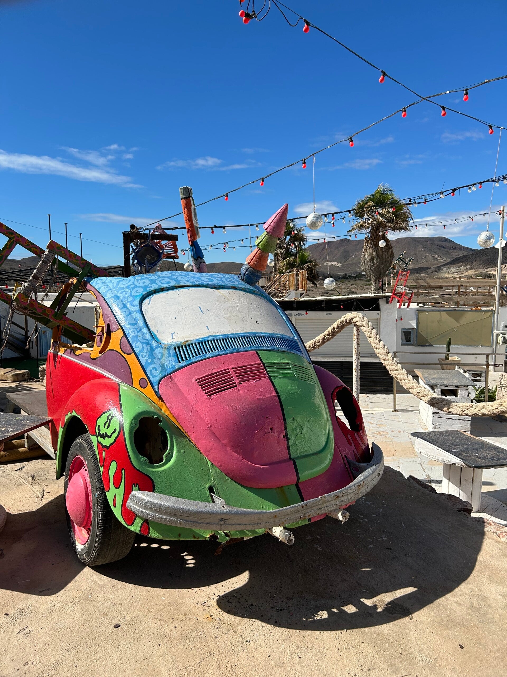 Maar even wat informatie over de plek ,over de camping heb ik al eerder geschreven ,waar wij verliefd op zijn geworden ,Los Escullos is prachtige plek, een paar kilometer ten noorden van San Jose. Los Escullos bestaat uit een klein groepje huizen met uitzicht op de grillige kustlijn van Almeria. De woningen van Los Escullos liggen rond een oud 18e eeuws fort, Castillo de Don Felipe, direct aan het strand. Het fort werd gebouwd in 1764 op bevel van Carlos III om de kust te verdedigen tegen de Barbary (Noord-Afrikaanse) Piraten. Negen forten werden gebouwd langs de 390 km lange kuststrook tussen Garrucha (Almeria) en Manilva (Málaga). Bezet door Franse troepen tijdens de Onafhankelijkheidsoorlog, in de 20e eeuw werd het fort een Guardia Civil-kazerne. Hoewel het fort in 1991 is gerestaureerd en in uitstekende staat is, is het fort helaas niet toegankelijk voor het publiek. Je kunt op de binnenplaats een kijkje nemen door de ijzeren balustrades bij de ingang. Los Escullos was de locatie voor verschillende scènes in de film Never Say Never Again uit 1983, James Bond. Les Daltons, een Franse komedie uit 2004 van Western gebaseerd op de stripfiguren Lucky Luke, werd hier ook gefilmd