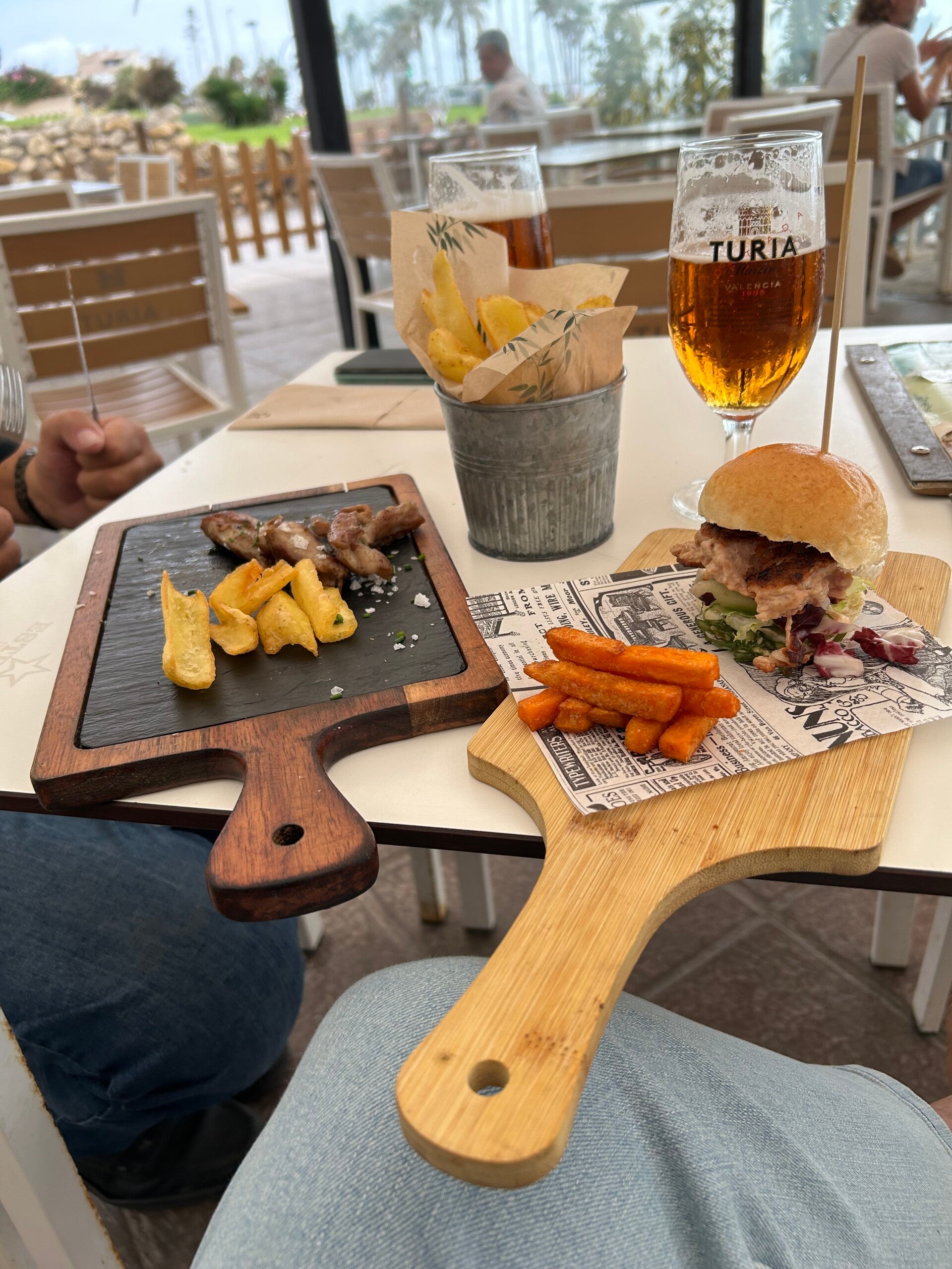 Op de terug reis langs de zee een biertje met wat tapas genuttigd