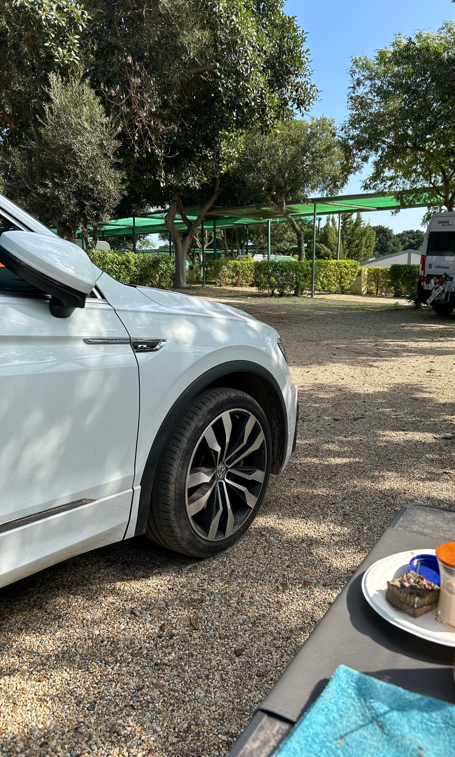 Heerlijk rustig op de camping op dit moment in ons laantje ,wat Duitsers ,Nederlanders ,Italiaan ,Fransen maar ook een aantal plekken leeg.