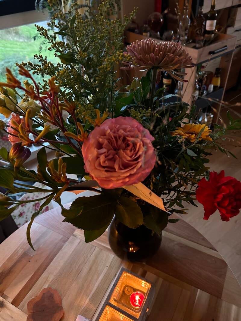 Bas heeft ook nog twee schilderijtjes op gehangen en we hebben voor Tara dewi een plekje gevonden. ps Ze weegt meer dan 18 kilo .En vandaag bloemen van mijn allerliefste schatten, ben in zo n warm nest terecht gekomen. Was weer zeer emotioneel natuurlijk