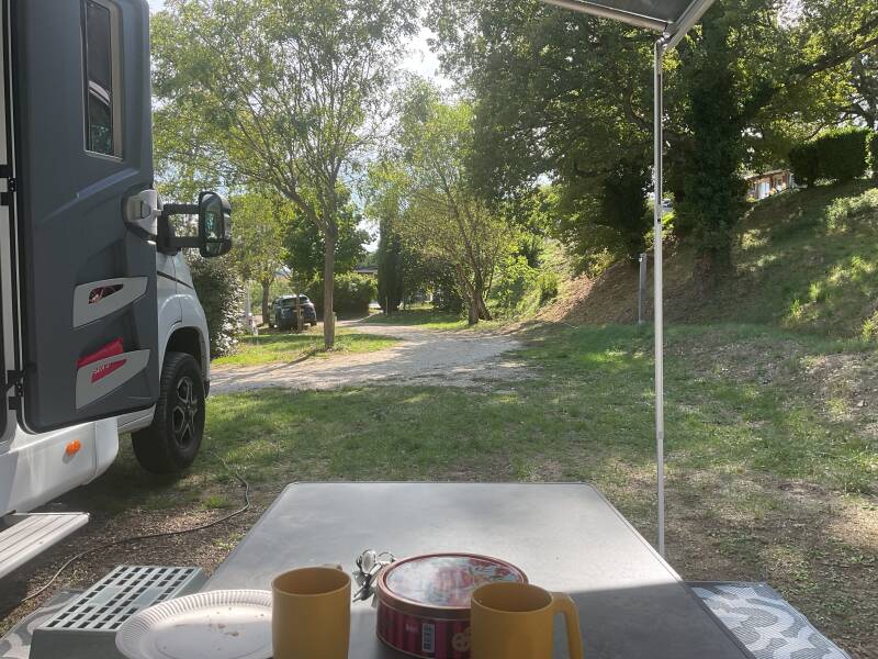 Rond 15.00 uur aangekomen op de camping Mon plaisier in Saint Rémy de Provence .Hier blijven we een week staan .De vooruitzichten zijn hier goed en nu 26 graden .